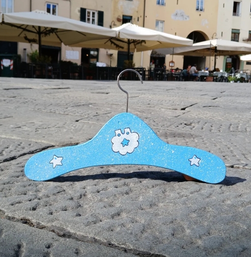 Un delizioso bavaglino e tante stelline per questa gruccia appendiabiti dedicata ai più piccini.