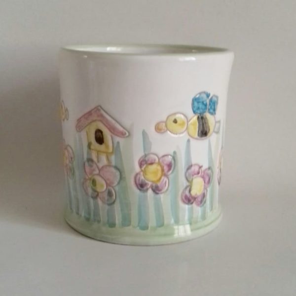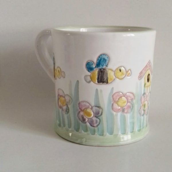 Mug, boccale decorato con fiori ed api.