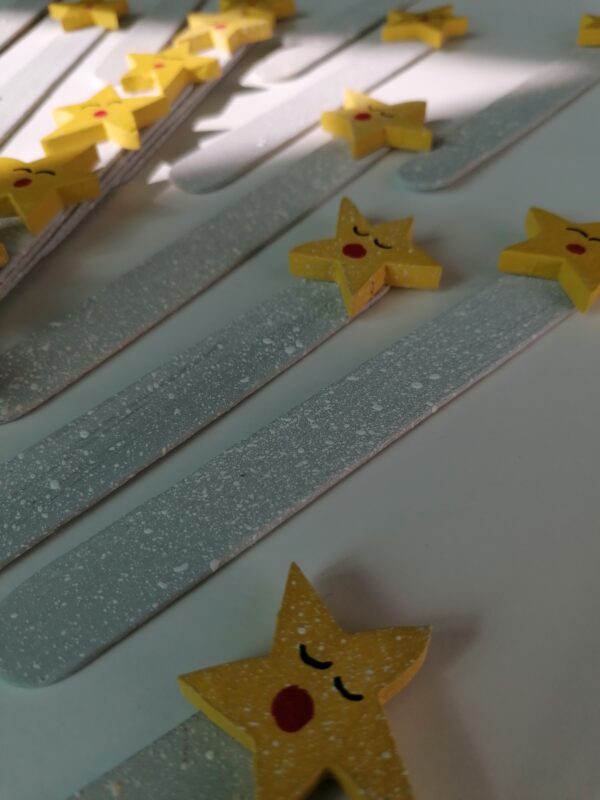 Delicato segnalibro con applicazione in legno interamente realizzato dai nostri ragazzi.